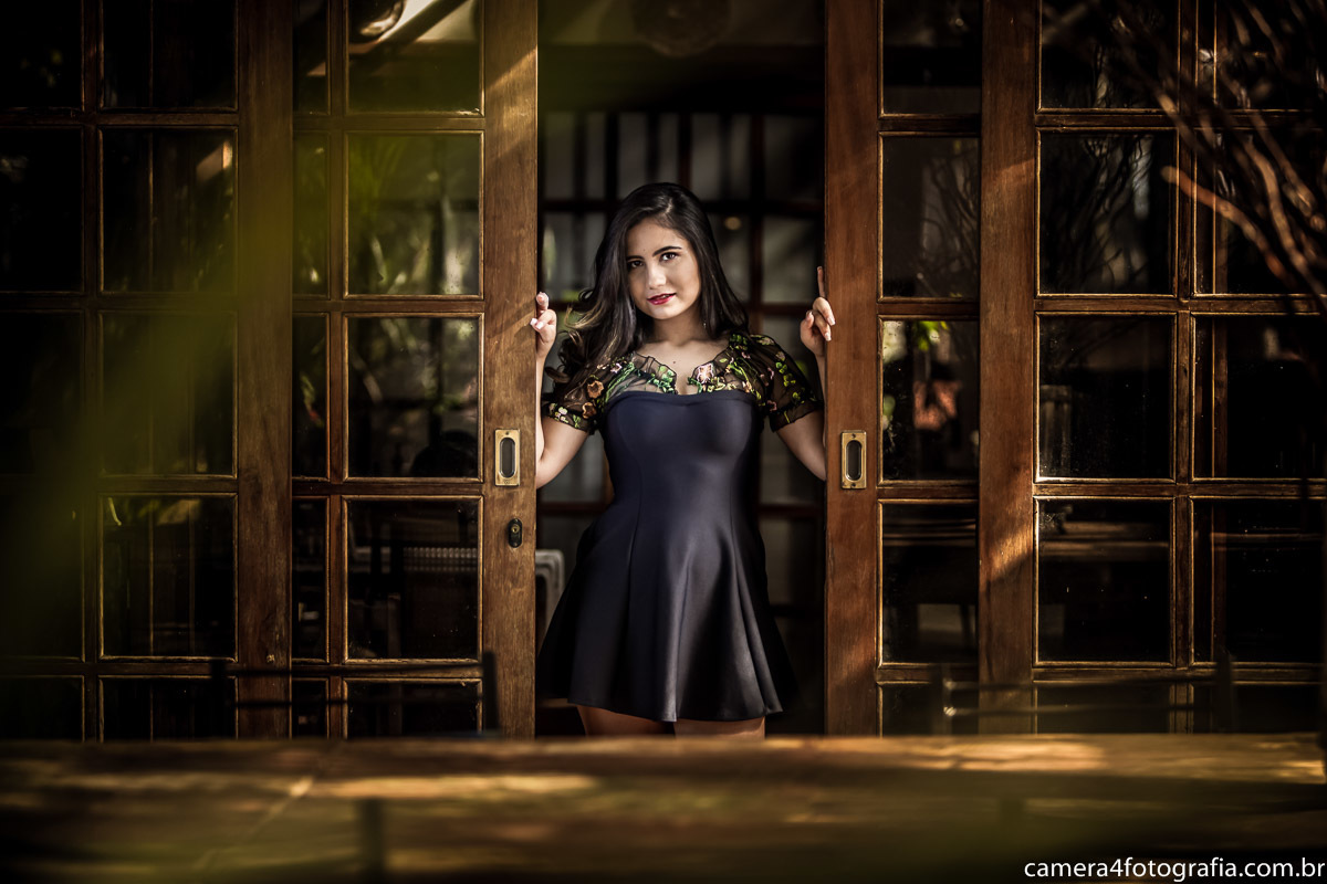 debutante no ensaio pre aniversario de 15 anos na natura debruçada na janela