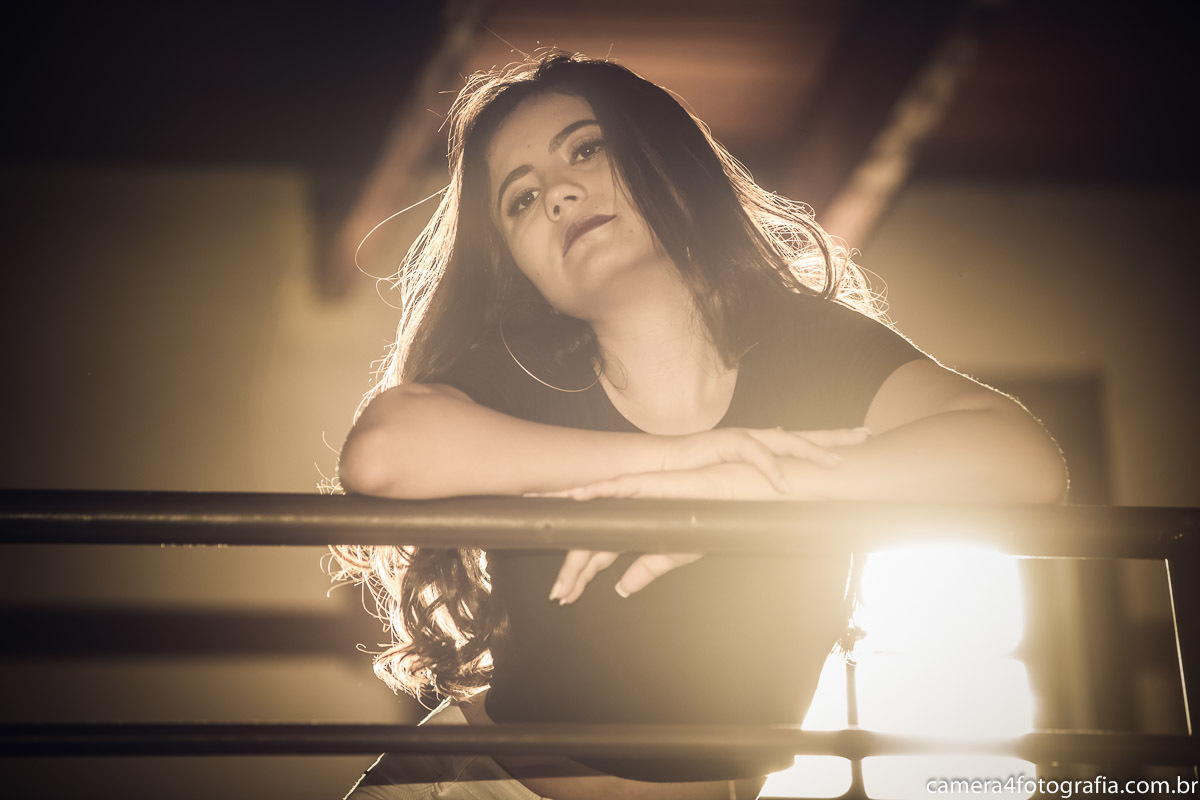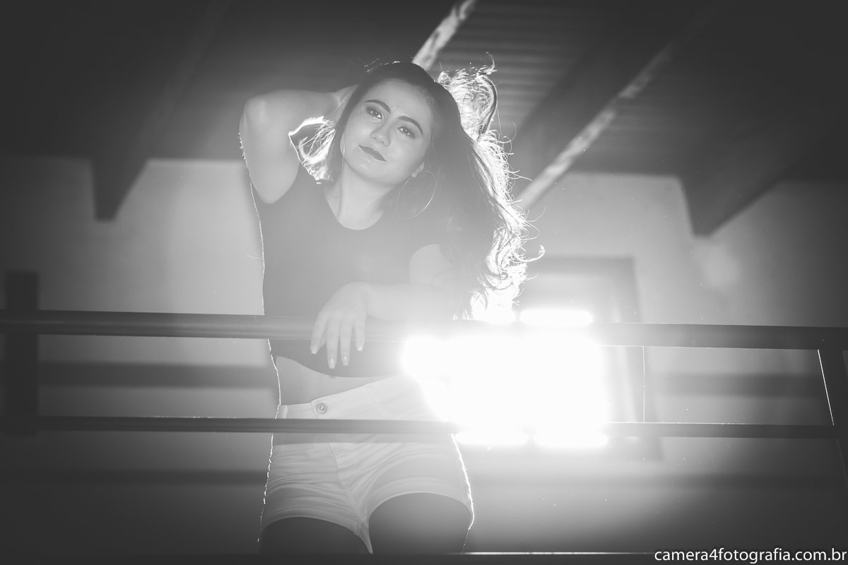 aniversariante olhando para câmera durante o ensaio de 15 anos